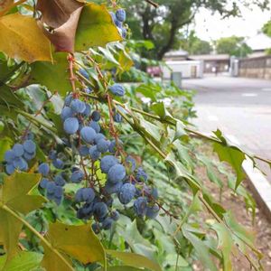 まるで葡萄の実が🍇たわわになっているかのよう🤗 デンパークで見つけたこの不思議な実 たぶんヒイラギナンテンの一種ではないかな🤗🌸 「君の名は」
