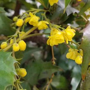 R2 2 / 22 柊南天 🌂🌤️春一番 散歩🐾👣途中にて…🤳 春陽に照らされ💛 黄色が光る