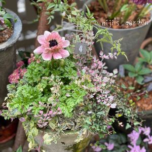 アンアリス。 2月の寒い時期に寄せ植えを結構し、 ようやく2番花咲きました♪