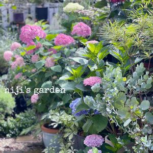 アナベルはピンク系だったけど、 他の紫陽花は青系だったんだけどなぁ。 今年はピンク系で咲いてます。 これはこれでアリ。