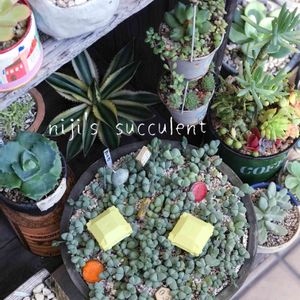 木箱の多肉さん(-´∀︎`-) グリネがグリンピース並みに一粒が大きいです(⊙︎ロ⊙︎)美味しそう😋