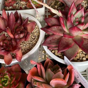 今日も雨です☂️ エケベリア ルブラ 赤くキレイですが、形が〜・・・ 全然大きくならない⁉️ 最初よりも小さくなっているかも🥲