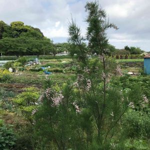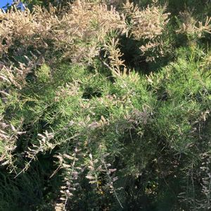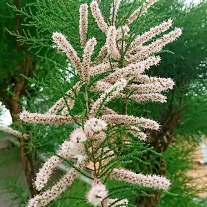 小石川植物園 ギョリュウ 不思議な雰囲気がする姿でした。 お花はとても小さくて淡いピンク❣️ 葉っぱも細くて風にユラユラ 初めて見ました。