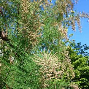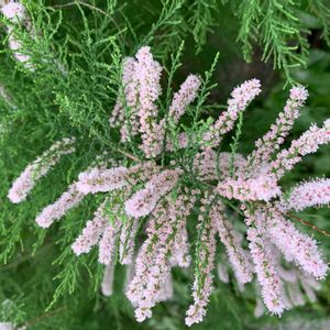 *ギョリュウ*(御柳) 🐡 (⊙ω⊙)ギョギョ さかなクンではありません(笑)毎年咲いてたのに見逃してたのね。 2020 6月9日撮影 *ナデシコ目 *ギョリュウ科*ギョリュウ属 学名:Tamarix chinensis 互生葉序 複穂状花序 花色:ピンク〜白 花期:夏,秋 原産地 中国 針葉植物のように見えますが 広葉樹です。初夏と初秋に2度咲きます。と有りました。😅🐡