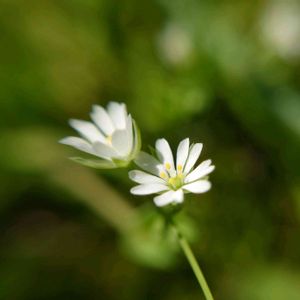 ノミノフスマ (蚤の衾) ナデシコ科 ハコベ属 4~10月 10~30cm 在来種 水田や野原などやや湿った場所に咲く 花弁5個は基部まで深裂するので、全部で10個の花弁に見える ハコベ属の特徴ですね😊 花弁は萼片より長く、花径は5,6mm~10mm、時に10mm超…そんな感じなのけ!?😂 高温期に花弁が小さくなったり枚数が減ったり、無花弁になる事もあるようですが…🙄 雄しべは5(~7)個 最後の画像では取りあえず6個の雄しべが見られますが、しっかりしているのは5個だけで、6個目は小さいかな…🙄 花柱は3個 葉は対生し無柄で紛白色を帯びる 茎も細いし、全体的に柔らかな印象でした😊