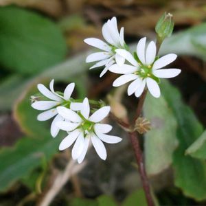 ノミノフスマ(蚤の衾) *ナデシコ科ハコベ属 花期は4〜8月 全国の畑.荒地などのやや湿った場所に生える越年草! 高さは10〜30cm 葉は対生し柄が無く長楕円形〜広披針形で先が尖る! 茎頂に数個の集散花序を付ける! 花弁は白色で5個。 基部まで2深裂し10花弁に見える! 月山の麓でこの花に出会えるとは思いませんでしたから、しばらく目を奪われました❗️ 5月24日撮影