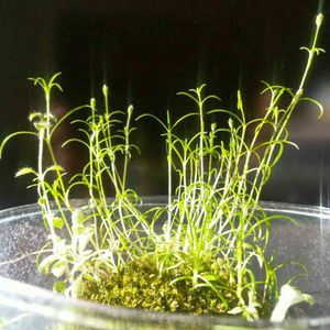 メインの苔より目立ってる… ツメクサよりも小さいのでノミノフスマだと思われる雑草。 雑草という名の植物は無い!って昭和天皇の言葉でしたっけ。 何であれ、朝日を浴びてすっくと立つ姿は美しいです。