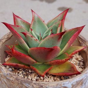 おはようございます マディバの幼少期?🤔 みたいなフォルムに アガボイデスの質感😎 ステラさん🤗 何が交配されているかは わかりませんが このコの魅力は?🙄葉の裏♥️ 夏場も変わらぬスカーレット‼️ 撮影はやや横気味で~👍️ よい1日を…
