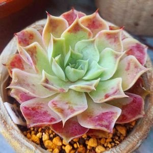 おはようございます もう夏だというのに❗ 植え替えしました~🤣 我が家でも長老クラスの 2頭ラウリンゼさん🤗 3年くらい植え替えせず ほったらかしてました‼️ 今年のあの大寒波に 完全に凍りつき~👍️ エケ最強といってもよし😃 押しも押されぬ エケベリアの王道🎵 隙間がさびしかったから 斑入りミセバヤ同居~🎶 も少し育って秋の紅葉も イイですね✨ よい1日を…