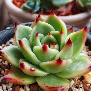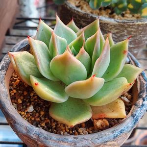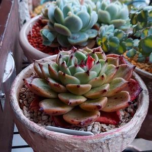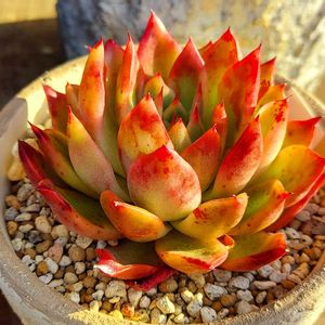 おはようございます 夏に赤くなる代表 ロメオ🤗 で?🙄 赤は‼️ともすれば 一発退場~👍️の危険をね⁉️ はらんでるんじゃ?🤔 多肉さんからすれば キレイな色になってる時こそ⁉️ フツーでない?かもね💡 この系統に苦手意識は なかったのですが~🤣 昨年の今頃 植え替えたらば❗ 何故か調子があがらず~😂 今になってどうやらこうやら✨ 何を間違えたのやら🤣 よい1日を…