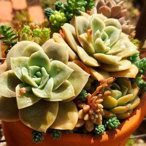 おはようございます ちょっぴり水切れ気味?🙄 アエオさんふたつ🤗 このコたちはね😃 去年の今頃にお迎え~👍️ キレイな株でした‼️ ところが!Σ( ̄□ ̄;) 根づいころに あの‼️猛暑~🤣 みるみる貧相に~👍️ つまり瀕死になりましたよ⁉️ からの~ ボチボチ復活♥️ 生意気に紅葉🍁してます🤣 まぁね💦 無理からぬことで アエオのふるさとはカナリア諸島 年間気温は25℃前後~👍️ 大西洋に浮かぶ😃💡常春の島々~🎶 ほら😃 竜血樹やらコミフォラやら もっと身近に お花のマーガレット‼️ 有名な植物界のガラパゴス~🤣 エケベリアだってメキシコが主で❕ そりゃ~ 日本の夏🏄️☀️は…ねぇ とはいっても💡 慣れるんですよ☺️ そ れ な り に♥️ ご近所の方なんて 春夏秋冬❗ 毎日 お水をた~👍️ぷっり それも頭から⁉️ エケやアエオに~ そんでも イキイキしてます🎵 慣れって 素晴らしい👏👏 さて このところの気温は25℃前後 エケやアエオにとって うれしい😃🎶気温~👍️ とりあえずお水あげましょ♥️ 注⚠️ お天気みてね~🤣 よい1日を…