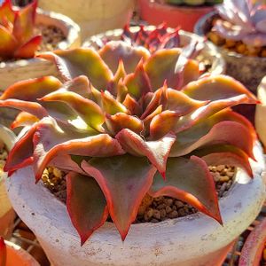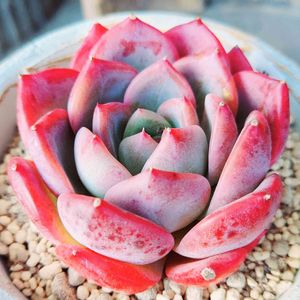 こんにちは👋😃 お日さま☀️が西に 傾く昼下がり?💡 いや もう4時まわってます🤣 こちらでの多肉の紅葉🍁 実は年明けが本番です~👍️ だからか? マディパさん🤗 夏場ピンクなはず⁉️ 夕焼け色です~🎶 (この後は落ちついた色に…) 少し早いですが 今日1日 お疲れ様でした。