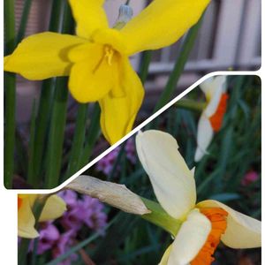 毎年咲いてくれてます🌼🌼🌼 鉢植え3年目🙄? でも「口紅水仙」の筈なのに真ん中がオレンジに なりませんでした🧡 色が落ちできたのかな~╮(๑•́ ₃•̀)╭ 気温が上がって水仙がやっと咲きました🌼 後ろのピンクは沈丁花🌸 こちらも満開になって良い香りクンクン( ̄∞ ̄)❀.*・゚