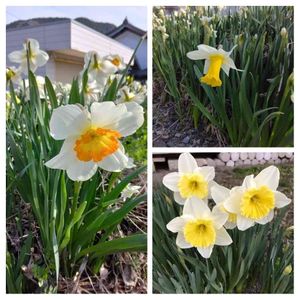 おはようございます😃 水仙集まりました~♬🤍💛 八重の房咲き ラッパ水仙の白と黄色 口紅水仙と様々な種類がありますね✨