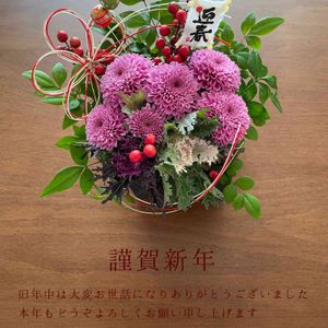 お正月アレンジ ちょっと残ったお花でも ミニ若松があれば 何とか恰好が付いてる?!