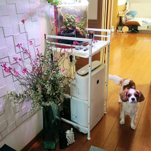 玄関の花、痛むのがそこそこ早いので3日に1回ペースで全交換&床の掃除してるんですが、今日は大量に咲いてくれているガウラとワッサワサに茂っているシルバープリペットを数本カットさせてもらいました。 写真撮ってたらモモが何してるです…?もしかしてお外行くでしか...?って見に来てましたw 朝からロングの散歩行ったでしょ、もう暑いから外でないよ。