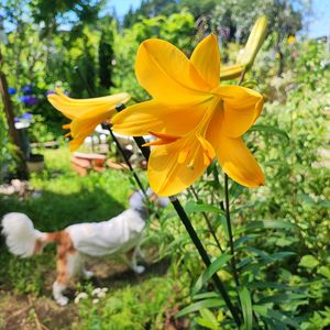 可愛らしい切り花お迎えしました✨ マトリカリア?? お初にお耳に致します😳 名前全く知らなんだ… 仏壇と玄関に半分こ…生けました。 また咲き出したルピナスさん ダンスパーティーさんを添えて🤗 ゴミ出しに向かったら… イビキかいて寝てたのに玄関迄追ってきたチビさん 後ろの生け花で 🏷️ワンワン祭り 参加します