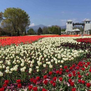 過去 picより 2017年の群馬フラワーパークの風景です。 コロナウイルスのため閉園され、誰に見られることなく、植え替えのためにチューリップの抜き取りが始まったそうです。本当に残念で😢沖縄では、8万本のユリの花が刈り取られたとニュースがありました。😱