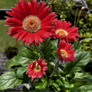 ガーベラ 直射日光には当てずに育てていたら こんなに暑いのに咲きました! すごい頑張り屋さん♡