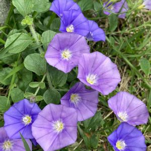 芝生を這うコンボルブルス 💜💚💙💜💚💙 スッキリしないお天気です😆