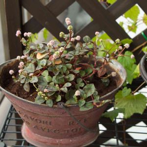 ヒメツルソバ(ポリゴナム)。以前、池の周りに雑草のように生えていたのを思い出して丈夫さ優先で招き入れた。 これも寄植えで使おうと思ったけど、他の植物に影響がありそうなので、単体植えに。チョイス間違えた。 ブリキ缶の鉢が使いまわし過ぎて錆が酷く穴が空きそうだ。