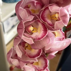 お正月のお花 毎年お隣さんから庭の蝋梅を切っても頂くので甘い香りがします。 白のポンポン菊が欲しかったのですが無くてデンドロビウム エンジェルベイビーグリーン愛を3鉢置きました。
