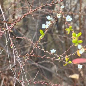 神社に⛩いまごろ参ってきました🙏 ユキヤナギ💠でしょうか…。ほかにも、いろんな小さな春🌸を、みつけました🤗