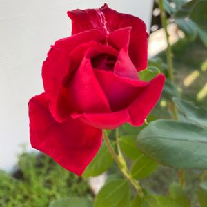 クリスチャンディオール🌹がうちに来て最初のお花を開きはじめました❣️赤に吸い込まれそうで🌹出会えて良かった❤️