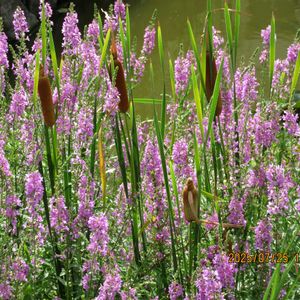 水辺でミソハギとガマの競演💕