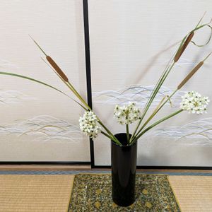 素朴で夏らしい雰囲気の作品になりました☀️ ガマがふわふわしていて、可愛らしくも何だか不思議な感覚です! オニソガラムも清楚な感じで可愛いお花です✨