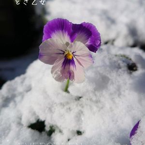 昨日の雪は昼間の陽射しで雪とけて 夕方からまた雪降って、今朝も 積雪ありですが、お日さまでとけそう☀ ① うえたさんオリジナルビオラ とき乙女 雪からピョコっと出ていて可愛い💓 ②③ フリル咲きパンジー シエルブリエ ピンク系は花数少なめですが 水色系は、ずっと咲き続けていて とても好き〜😍