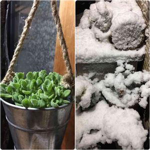 🎶窓の外は雪〜❄雪が降ってる〜️🎶。。。🙄 頑張れ多肉🍀 雪になんて負けるな‼️ 連投でしたが、🙏🏻 きっと今年最後の雪☃️のような気がするので 🍀と❄️のコラボです✨✨✨✨✨😁 🍀❄️🍀❄️🍀❄️🍀❄️🍀❄️🍀❄️🍀
