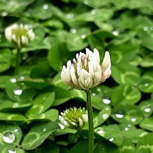 雨上がりのシロツメグサ ほんのりピンク色 😸→ばあちゃん、 可愛いからって、ジーーーッと さっきから 見つめ過ぎニャン 👵→雨は冷たかったの? それとも… 気持ちよかったの?? って、聞いたのよ。 ❁→雨より晴れが好きよ。 明日は、晴れだよ、 おばあ ちゃん 🏷日曜にこにこ猫目線