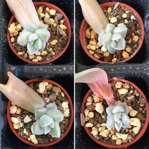 チョッキンしたものの、キツキツに鉢にこすれていたので、思い切って赤ちゃんの出ているところを考えて、さらにチョッキンしました!葉もバラバラに。 葉挿しっ子と共に大きくなーれー❣️