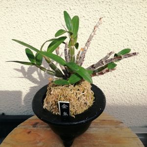 古典もの その6。 長生蘭 金鳥(セッコクの園芸種) 葉にうっすらと縞が入るぐらいであまり芸が出ないなぁ…