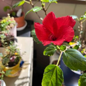 赤い ハイビスカスの花が🌺 咲きました♥️