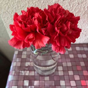 頂いた お花が明日で1ヶ月に🌸🍃 短くカットして 水耕栽培用 フラワーベースに 飾ってみた...♥️