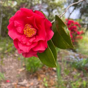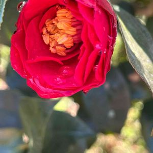 赤い椿も まだまだ 元気に お花を 咲かせああます🌺🍃