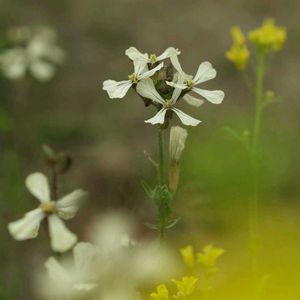 クレオパトラも美容のため 食べたと言われている ルッコラ🌿 別名 ロケット シックな花が 咲きました♡🎶 *アブラナ科 *キバナスズシロ属