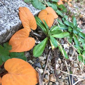 ヘクソカズラの 葉っぱが紅葉して オレンジ色の ハート🧡が並んでます 可愛い🧡