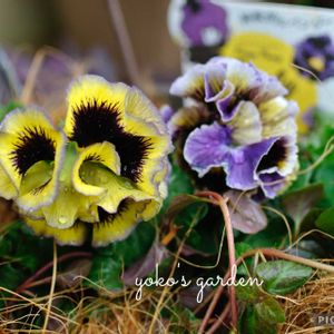 おはようございます♪ 昨日postしようと思って忘れてました💧 近所の園芸店で可愛いパンジーがあったのでお迎えしました🌼 アリッサムも☺️ 『きもの』はフリフリ系のパンジー あとの2つは札がないから名前は忘れた😅 綺麗な色に惹かれました✨✨