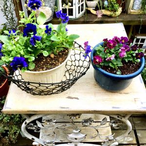 感化されてフリフリパンジー買いました❤ 左2つはビオラです。 いつもはビオラ派なんやけど… 大体、紫〜ピンクの色味を買うことが多いんやけど… フリフリパンジー、イタリアンジェラートって書いてた😆 どのへんが??