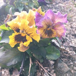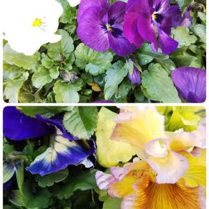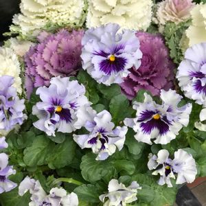 今日のパンジー💕葉牡丹その他と寄せ植えしてます🎶 日当たりが良くなってきて嬉しそうです(〃ω〃)