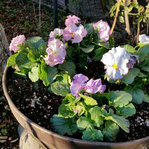 実家の庭から〜♡︎ʾʾ 花びらがフリフリのフリル咲パンジー 寄り添って٩(๛ ̆ 3 ̆)۶♥︎ 今年は出来る限り、様子見に行くね(//∇//) 父と母、今年も元気で仲良く暮らして いてね💞💞✨ 仙台にて