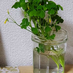 雑草だと分かっていますがグリーンが綺麗✨で瓶に挿しました🍀