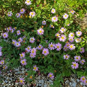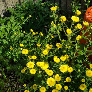 切り花の菊から根っこが出て🌱土に挿したら大きくなりまして、うねるように咲いております🌼