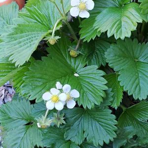 🏷️毎月15日は苺の日に参加しています。今日は苺の日でした🍓 何気に毎年どこかから芽を出すワイルドストロベリー。今年もモリモリしてきています💪
