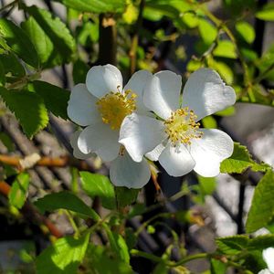 気温が上がってノイバラの蕾が開きました✨ 一見葉っぱがありそうですが実は虫さんで穴だらけ😁💦