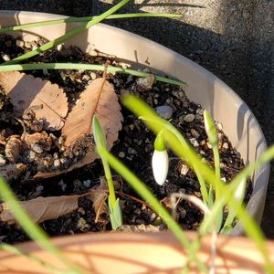ちょっと早いかも❗ スノードロップが咲きそうです。 ん?こんなとこ植えたっけ(・_・?)