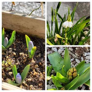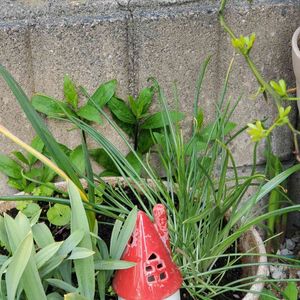 この鉢の中の球根の皆さんは葉っぱばかり🤣まさに緑の共演😁 うしろ~の方にはスズランの芽が出ていました🌱
